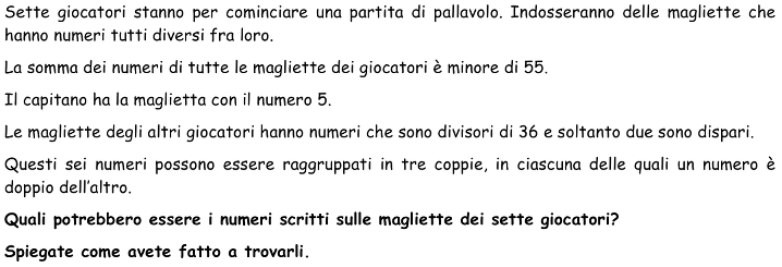 Concludere che i numeri scritti sulle magliette dei sette giocatori possono essere: 1, 2, 5, 6, 9, 12, 18 oppure 2, 3, 4, 5, 6, 9, 18.