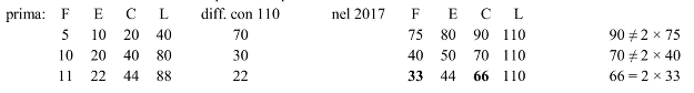 Da notare, invece, che in alcuni elaborati lo scarto giusto d = 2F è ottenuto in modo errato calcolando la differenza 4F−2F = 2F tra l’età di Carla nel passato, cioè 4F, e quella nel 2017, considerata erroneamente 2 F!