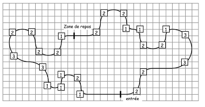 - Remarquer que le circuit est formé de parties droites et d’une succession de quarts de cercles de différents rayons.