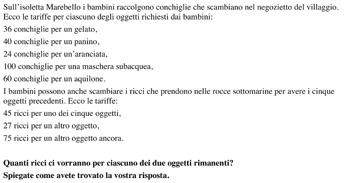 Far corrispondere i termini di due serie proporzionali (in disordine): 24, 36, 40, 60, 100 e 27, 45, 75 e calcolare i corrispondenti del 4° e 5° termine della prima, in un contesto di scambi.