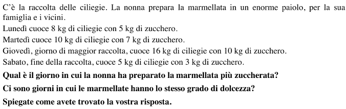 Trovare tra le quattro coppie di numeri (8;5), (10;7), (16; 10) e (5; 3) quelle che sono proporzionali in un contesto di ricetta.