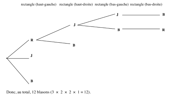 Donc, au total, 12 blasons (3 × 2 × 2 × 1 = 12).