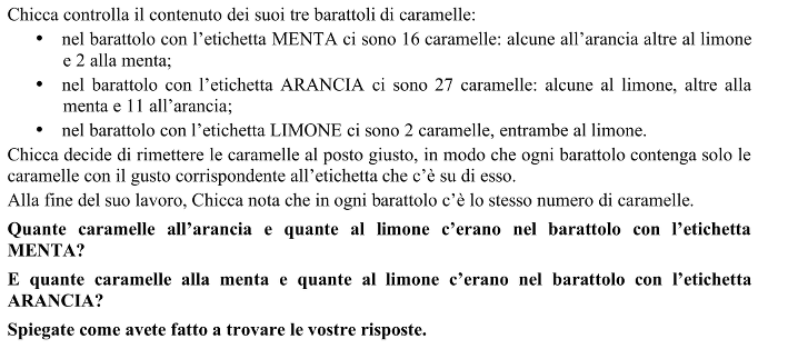 Tre tipi di caramelle sono distribuite in tre barattoli. In ciascuno di essi c’è lo stesso numero di caramelle di ogni tipo. Determinare il numero di caramelle di ciascun tipo messe in due dei vasetti, conoscendo informazioni parziali sulla distribuzione.