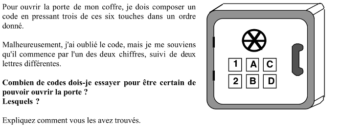 - comprendre qu'il faut trouver des arrangements de six touches, prises trois à trois