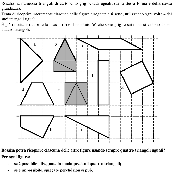 Ricoprire, quando possibile, un insieme di figure con quattro triangoli (rettangoli) uguali dati. Spiegare i casi impossibili.