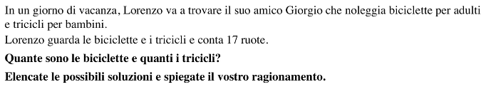Determinare il numero di tricicli e biciclette che insieme hanno 17 ruote.