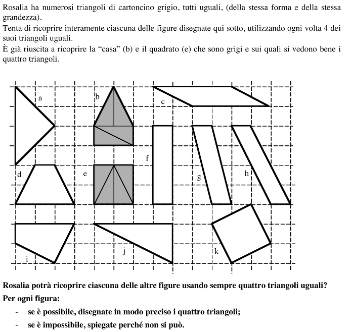 Ricoprire, quando possibile, un insieme di figure con quattro triangoli (rettangoli) uguali dati. Spiegare i casi impossibili.