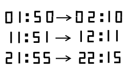 Déterminer une heure à partir de son indication sur une horloge digitale vue dans un miroir, sachant que la différence entre l'heure exacte et l'heure "réfléchie" est de 20 minutes.