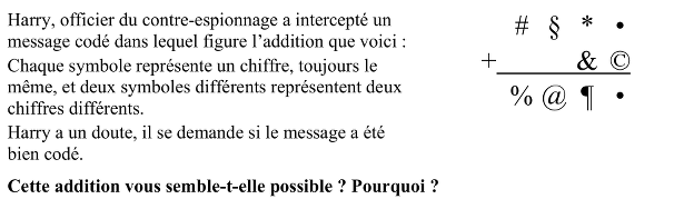 Juger de la possibilité de remplacer les codes figurant dans une addition en colonne de deux nombres de 2 et 3 chiffres.
