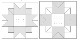 - Voir des décompositions possibles de chaque figure en ajoutant des traits dans le carré : déterminer l’unité de mesure commune (un carré ou un triangle) ; compter le nombre de carrés (16) ou de triangles (16) dans chacune des deux parties à colorier ; comparer ces deux nombres et reconnaître l’égalité des aires à couvrir.