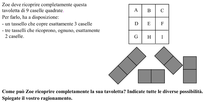 - Capire che si possono disporre i tasselli sia orizzontalmente che verticalmente e che il tassello più grande non deve ricoprire la casella centrale per eliminare le disposizioni nelle quali appaiono delle caselle isolate.