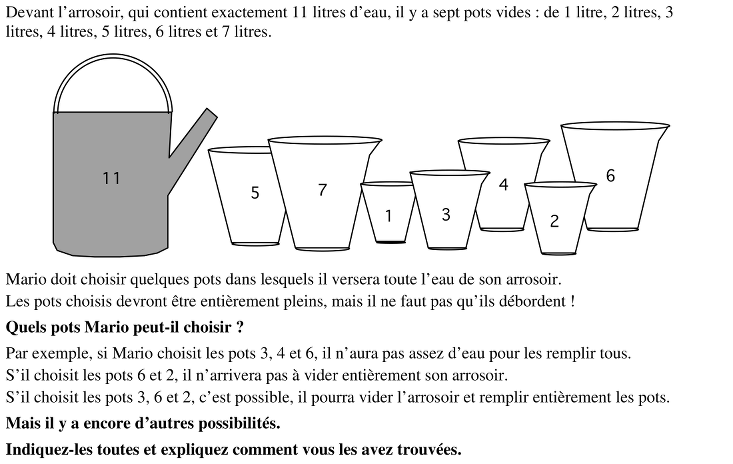 Il y a donc en tout 7 façons possibles pour Mario de remplir ses pots.