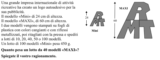 Determinare il peso di 40 fogli di formato grande, conoscendo il peso di 100 fogli di formato piccolo (il rapporto tra le misure lineari dei fogli รจ 60/24).
