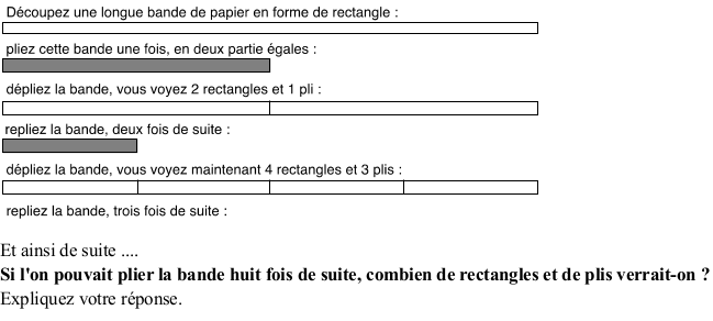 Trouver le nombre de plis et de rectangles après avoir déplié une bande de papier pliée huit fois de suite.