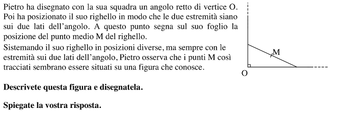 Descrivere la figura formata dal punto medio d'un segmento che si sposta, collegando i due lati di un angolo retto.