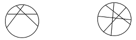 - Constater encore qu’il faut éviter les intersections communes à plus de deux cordes (ou cercle). Par exemple, 3 cordes peuvent déterminer, deux à deux, trois points d’intersection. Si elles sont concourantes, elles n’en déterminent qu’un seul, ce qui fait disparaître la région triangulaire déterminée par les trois points.