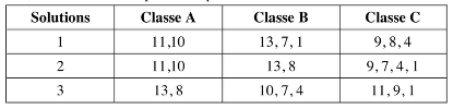 - Combiner entre elles les décompositions précédentes de manière à ne pas répéter les mêmes nombres dans une même combinaison, obtenir les trois répartitions possibles des élèves dans les classes