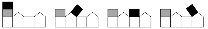 - Repérer les arêtes du patron sur lesquelles on pourrait adjoindre le rectangle qui manque et éliminer celles qui conduiraient à des superpositions ou qui laisseraient un « trou ».