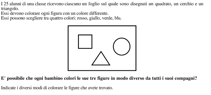 - determinare il numero di possibilità con il calcolo (4x3x2 = 24), attraverso un elenco, un diagramma, ecc.; - dare la risposta tenendo conto dei 25 alunni.