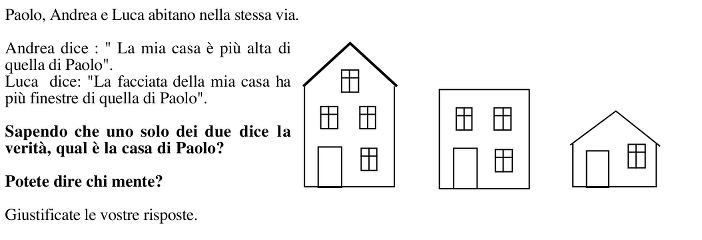 - dedurre che Paolo abita nella casa di mezzo e che non si può sapere chi mente, se Luca o Andrea.