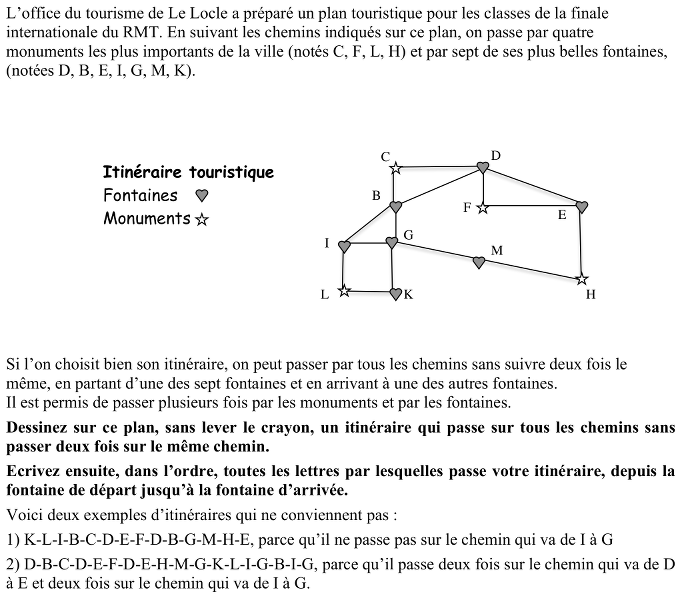 - Finalement c’est le nombre de chemins issus d’un point permet de choisir de choisir le départ et l’arrivée : I et E sont les seuls points reliés par trois chemins ; lorsqu’on passe par une de ces points, on emprunte deux de ses chemins, le troisième sera soit celui de départ, soit celui d’arrivée.