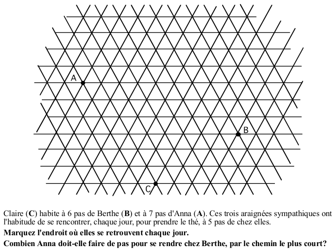 Déterminer un point à cinq unités de distances de trois points sur un réseau triangulaire régulier.