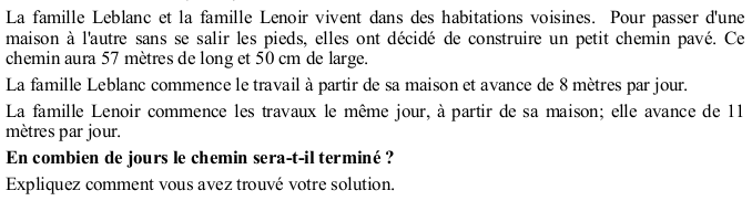 Décomposer 57 en somme de (11 + 8) dans le contexte de construction par les deux bouts d'un chemin de longueur connue.