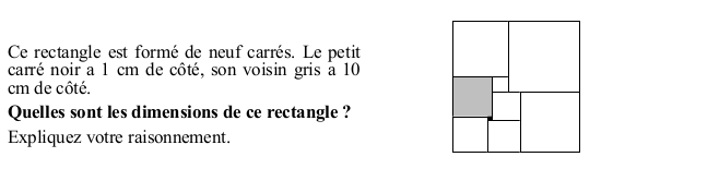 Déterminer les dimensions d'un rectangle formé de neuf carrés dont on connaît la dimension de certains.