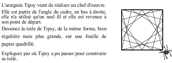 Examiner un ligne brisée produite par un tracé "sans lever le crayon" en reliant des points sur les côtés d'un carré. Reproduire le dessin en plus grand et indiquer le parcours du tracé.