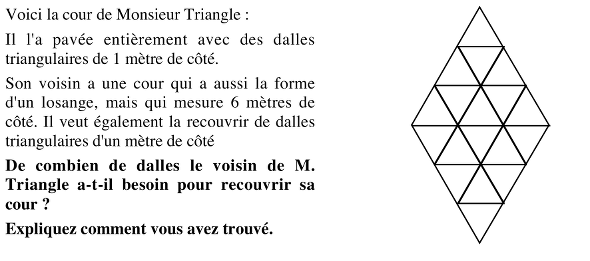 - Dénombrement des triangles-unités dans la cour de 3 m de côté : 18