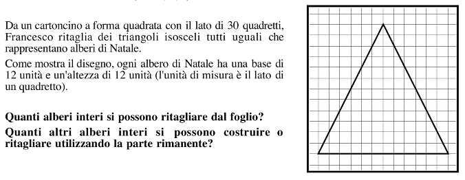 Determinare il numero di triangoli isosceli (disegnati su una quadrettatura) di base e altezza12 quadrati, che possono essere ritagliati da un foglio quadrettato 30 x 30. Determinare il numero di triangoli che si possono realizzare tagliando e assemblando i pezzi rimanenti.