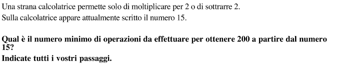 Determinare la sequenza di operatori -2 o x2 che permettono di passare da 15 a 200.