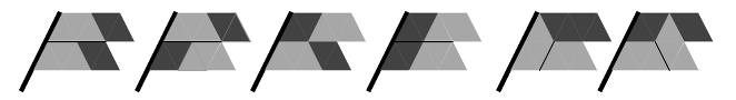 Décider s'il est possible de recouvrir une figure (donnée) composée de 10 triangles par des figures composées de 3 triangle et de 2 triangle (données) de 7 façon différentes.