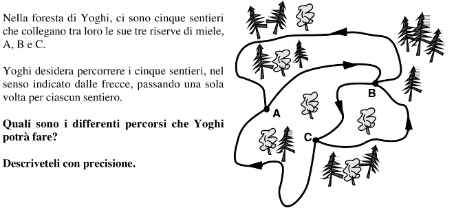 Determinare i diversi modi per percorrere un determinato grafo orientato formato da 3 nodi e 5 archi passando una sola volta per ogni arco.