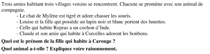 - Conclure que Claude habite à Carrouge et a un lapin.