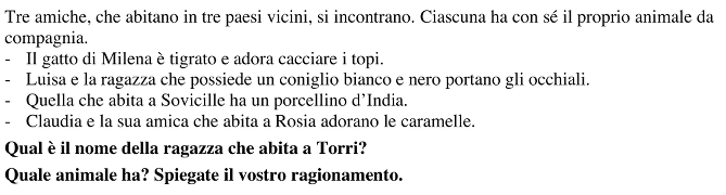 Oppure, riassumere le informazioni del testo in una tabella e completare logicamente le caselle vuote ragionando come sopra:
