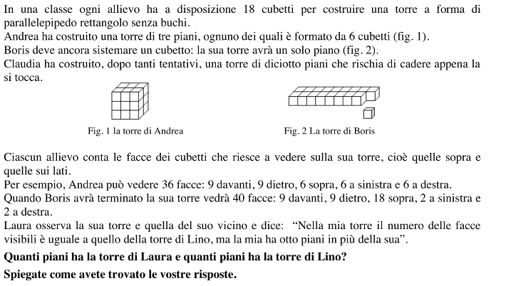 Confrontare parallelepipedi rettangoli costruiti avendo a disposizione 18 cubetti; in particolare, determinare il numero delle facce visibili in ciascuna costruzione. Trovare due costruzione che abbiano lo stesso numero di facce visibili, ma una differenza di altezza pari a 8 piani.