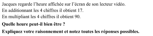 - Comprendre qu’il s’agit de trouver les quatre chiffres qui marquent l’heure sur un écran numérique et que ceci entraîne des limitations.