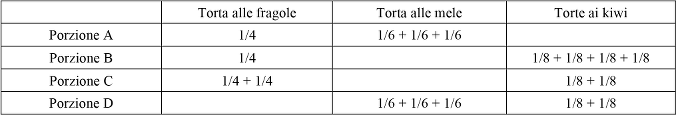 - Si possono quindi ottenere 6/8 di torta in quattro modi diversi, tenendo conto che ogni amico prende solo due tipi di torta: