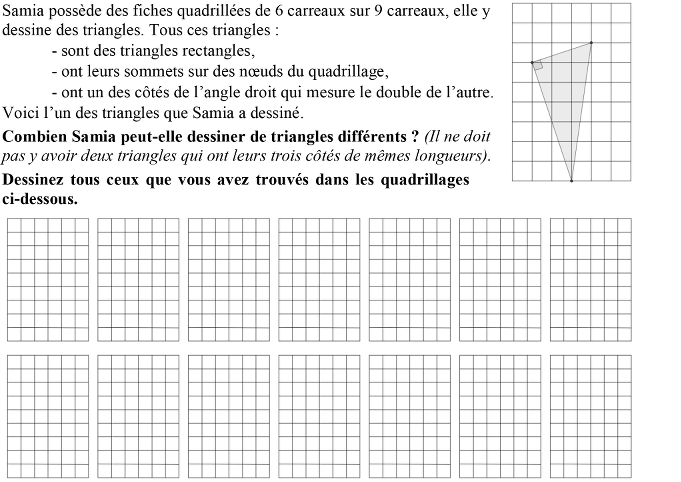 - Comprendre les contraintes et leurs conséquences : les triangles peuvent avoir différentes orientations et les côtés peuvent ou non suivre les lignes du quadrillage.