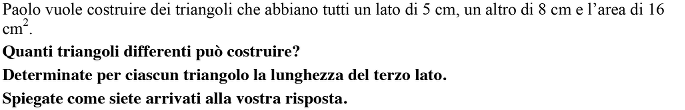 - Escludere che i lati di 5 cm e 8 cm siano i lati dell’angolo retto di un triangolo rettangolo: (5 x 8)/2 = 20 ≠ 16.
