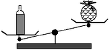- De ces trois informations, déduire qu’une bouteille est plus légère que le paquet et que la boule et qu’elle a la même masse que le gâteau.