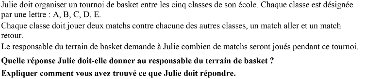 Ou considérer que chaque classe dispute 2 matchs contre chacune des autres équipes, donc dispute 8 matchs. En tenant compte du fait que chaque match est ainsi compté 2 fois, arriver à (8 x 5) : 2.
