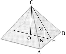 Si CAB est une face latérale de la pyramide, utiliser le fait que son centre de gravité M est situé au tiers de CH à partir de H et donc que :
