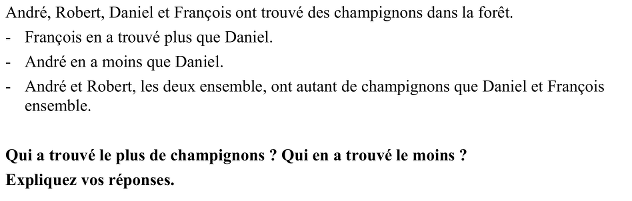 - Exprimer la réponse : C’est Robert qui en a le plus et André le moins.