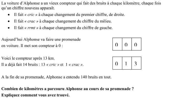Déterminer une distance parcourue connaissant le nombre de fois (140) où le compteur kilométrique a modifié son affichage.
