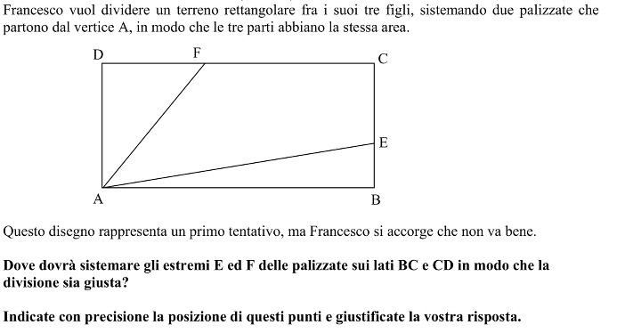 Un rettangolo è suddiviso in tre parti equivalenti da due segmenti uscenti dallo stesso vertice; determinare la posizione della seconda estremità di ciascuno dei segmenti su ciascuno dei due lati opposti.