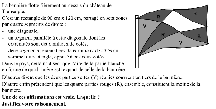Décider quelle affirmation est vraie parmi deux concernant la fraction d'aire que représente une parties d'une bannière par rapport au tout.