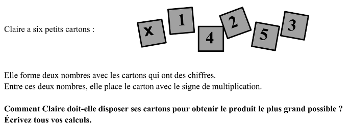 Utiliser les cinq chiffres 1,2,3,4,5 pour former deux nombres tels que leur produit soit maximum.