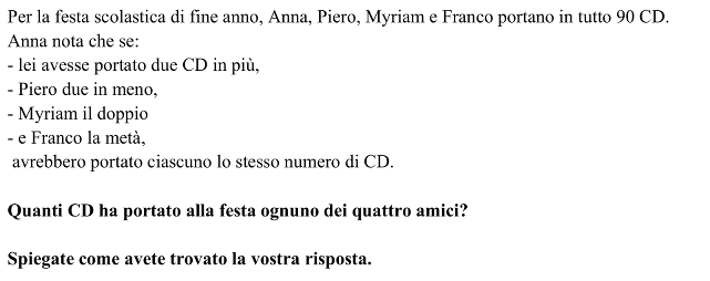 Oppure esprimere il numero di CD dei quattro amici in funzione del numero di CD di uno di essi, procedendo per via algebrica :